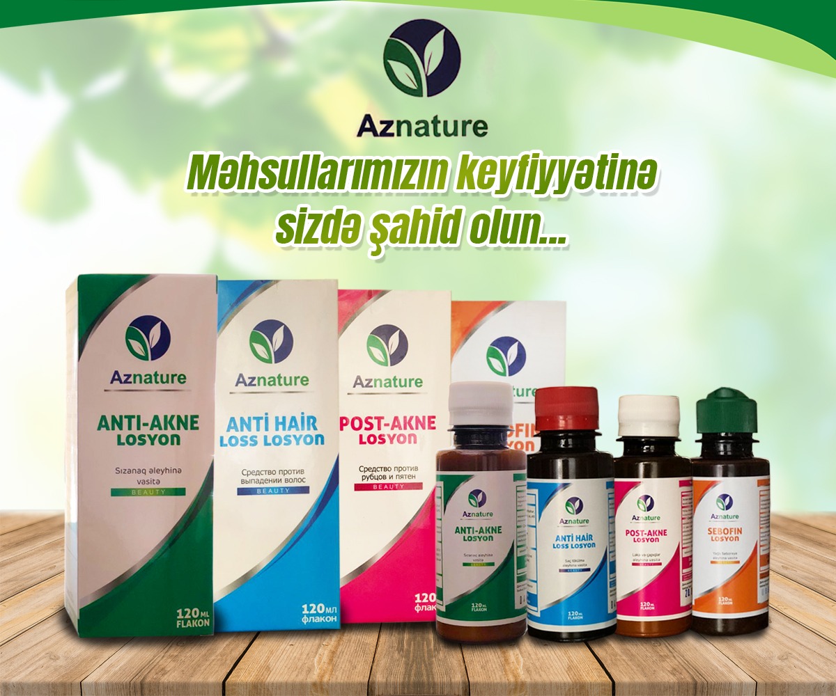 Aknesid Krem 16 AZN Hialuron Krem 25 AZN Anti Akne 14 AZN Sebofin losyon 14 AZN Post Akne losyon 14 AZN Anti Hear Loss losyon 14 AZN Melacid Losyon 20 AZN Pilinq Scar Losyon 25 AZN Trixomed Maska 15 AZN